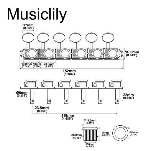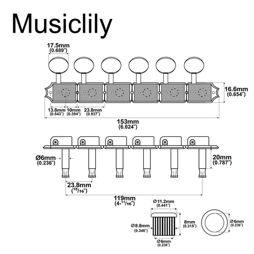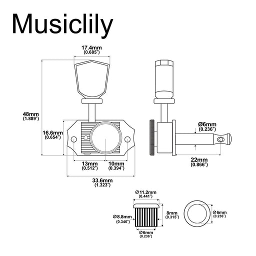 Musiclily ProFits many electric guitar and acoustic guitar with 3R+3L tuners, like LP/SG/ES style guitar Shaft diameter: 6mm(15/64 inch), vintage style bushing...