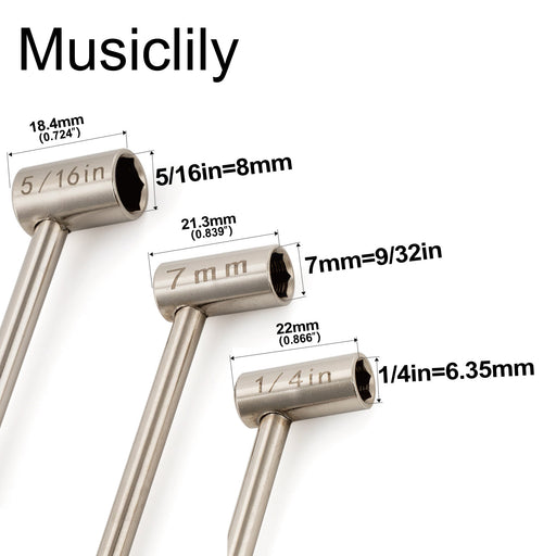 Musiclily Pro Hardened Steel 3Pcs 6.35mm 7mm 8mm Hex Socket Box Wrench Nut Driver for Guitar Bass Truss Rod Adjustment