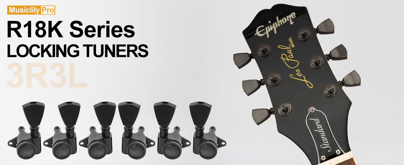 Musiclily Pro R18K 3R3L 18:1 Ratio Full Sealed Locking Machine Heads Tuners Tuning Pegs Keys with Keystone Button for Acoustic Electric Guitar