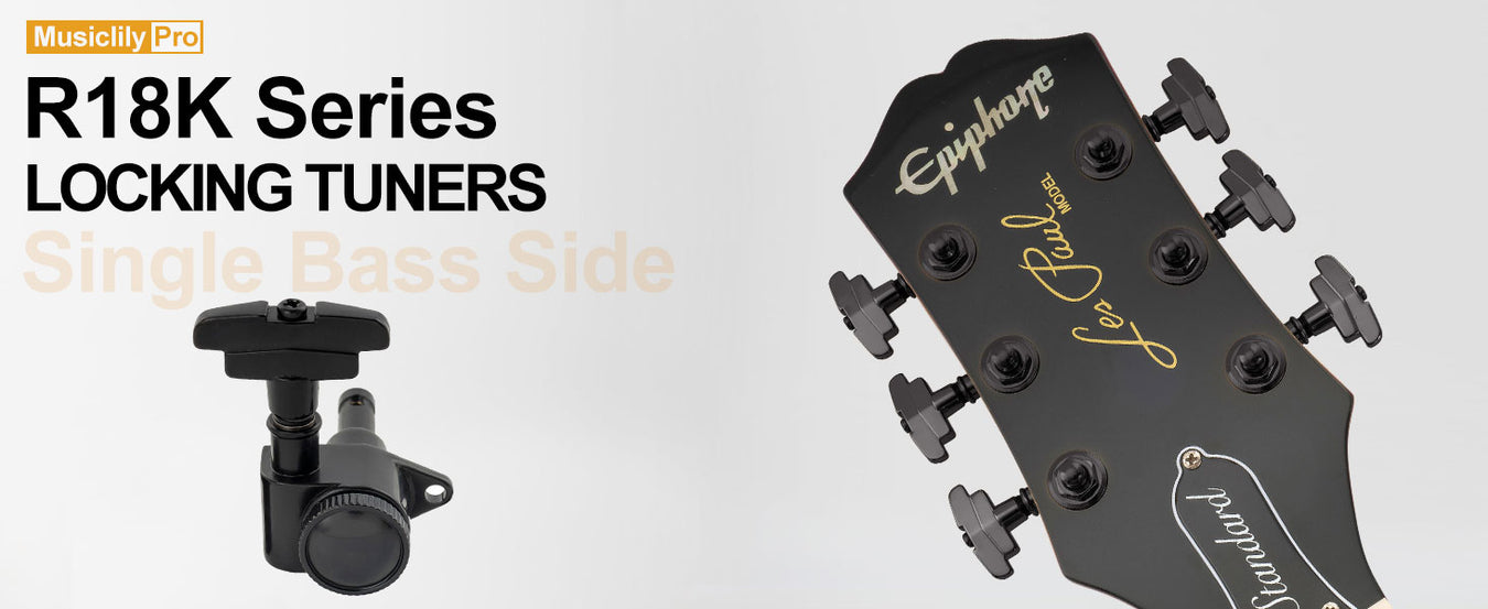 Musiclily Pro R18K Single 18:1 Ratio Full Sealed Locking Machine Head Bass Side Tuner Tuning Peg Key with GR-Style Button for Acoustic Electric Guitar