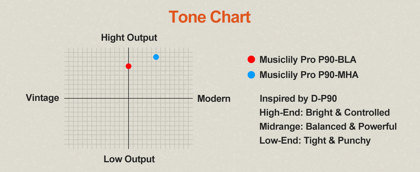• Traditional soapbar type P90 single coil pickup, the dual Alnico 5 bar magnets and the short, wide bobbins give the P90 its unique tonal character with a powerful midrange and higher output than most other types of single coils. This pickup sounds sweet and smooth, and will deliver big fat sounding chords