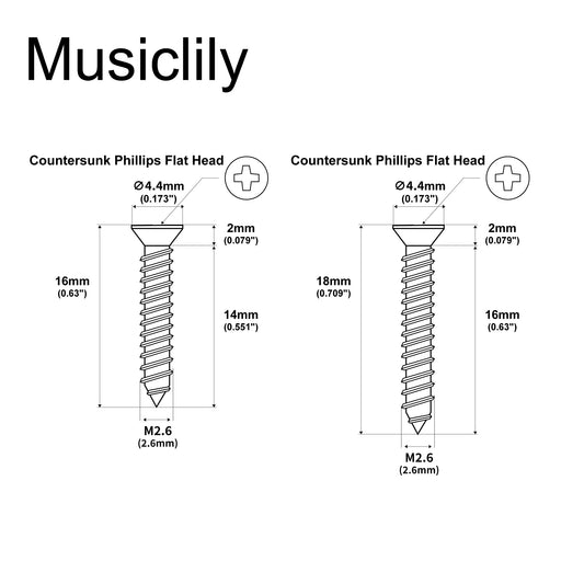 View full detailsMusiclily Ultra Metric M2.6x16mm/M2.6x18mm Stainless Steel Humbucker Mounting Ring Screws Set Phillips Flat Head Countersunk for Electric Guitar (Set of 20)