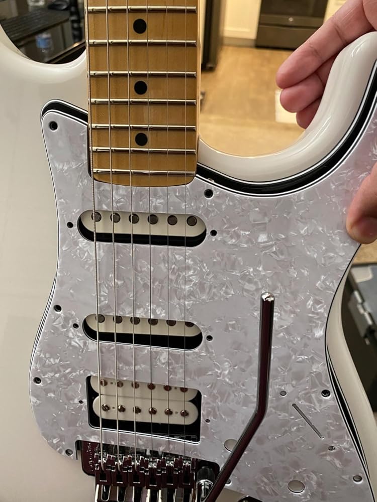 - Fits USA/Mexico standard strat with Floyd Rose bridge cut width.If you want to fits other guitar models, you may need modificate this pickguard to fit