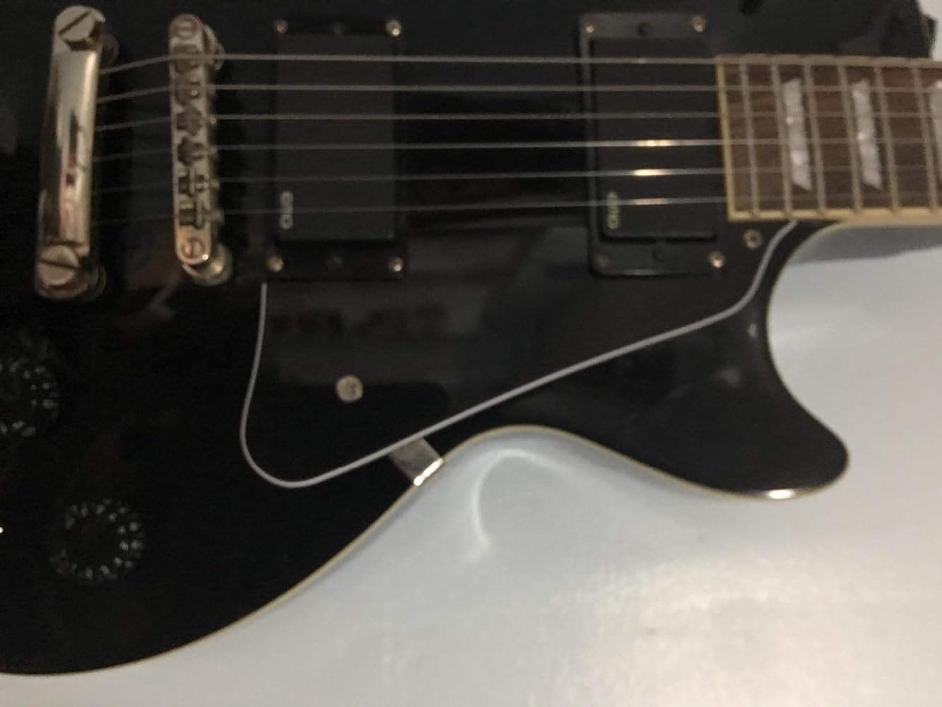 Hmmmmm para ser de una epiphone no tomaron en cuenta los botones y si es el caso hay que recortar para que sea ubicada al ras de la madera de la guitarra por debajo de los micr��fonos, si piensan colocarla con tornillo golpeador para elevar el pickguard pierden su tiempo tendr��an que recortar mucho , m��s recomendable si no lo hacen