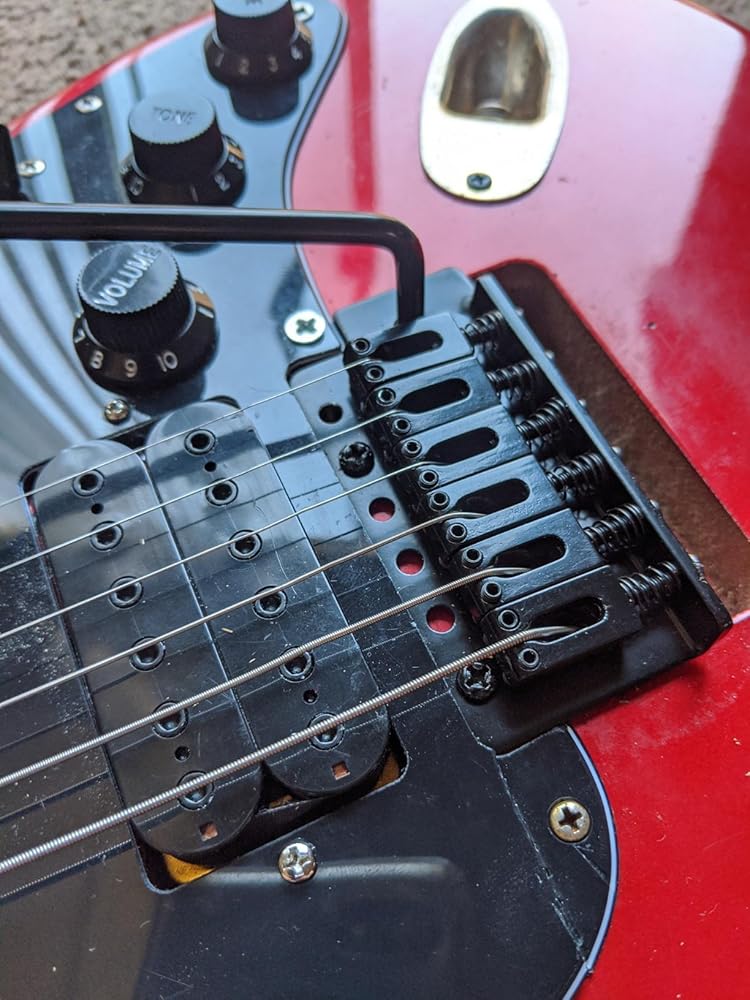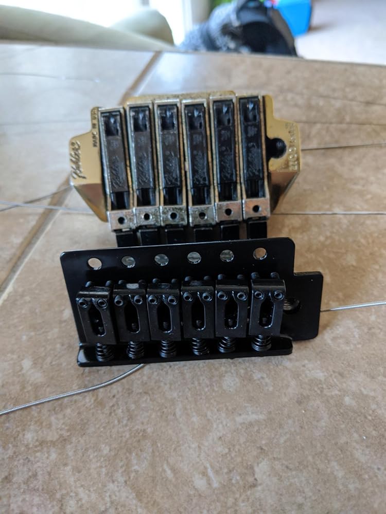 I am working on a project guitar, which had a low budget but functional trem bridge that was chrome. This bridge is of the same quality, but with a black finish. I have no complaints about the finish. I was reluctant to buy it because one of the reviews mentioned the paint scratching off easily, as if it were just cheaply spray painted. I tried scratching the paint with a screw driver on the under side of the bridge just to make sure the paint wouldn't flake off easily, and it was fine. Of course, it will scratch off like even the best luxury car paint, but it's definitely not anything substandard in that way.For the fit, it was a direct replacement for the screw holes of the original bridge I was replacing, but I did need to route out a larger hole in the guitar to allow the bridge to travel because he underside where the bridge meets the trem block was a bit different than my original. That was mildly annoying, but I took care of it within 20 minutes because I luckily had a trim router and the right router bit for the job. I then painted over the bare wood from were I did the routing out. I can't say if this would be needed for another guitar, but I wanted to mention I needed it for mine, so that might be worth considering if you aren't sure you are able to do that kind of modification.This is definitely not the kind of quality you can expect from a Floyd Rose, but I'd say it's about equal to the quality of the trem bridges that come on Squire stratocasters or similar low budget style with the screw in trem bar. So I rate it 5 stars for the low price and matching low expectations.