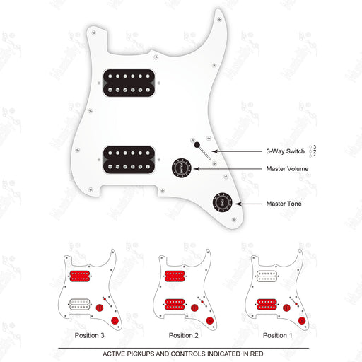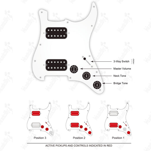 Wiring diagram of the standard ST-HH 3 pots pre-wired pickguard with Musiclily Basic pickup and American switch.