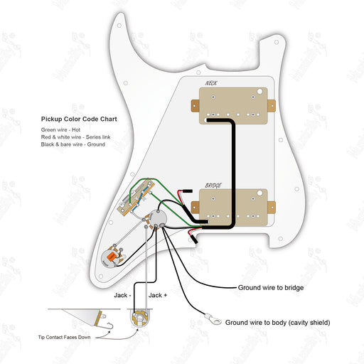 Wiring diagram of the standard ST-HH 2 pots pre-wired pickguard with Wilkinson M Series pickup and American switch.