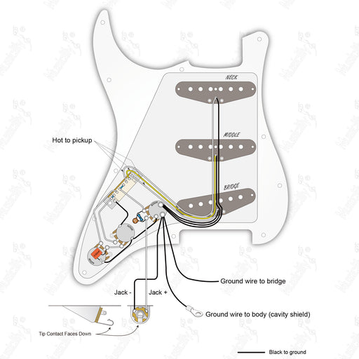 musiclilySchaltplan des Standard-ST-SSS vorkonfektionierten Pickguards mit Musiclily Basic Tonabnehmer und Import-Schalter.
