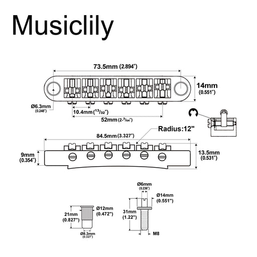 Musiclily ProPasst für Epiphone LP/SG und ähnliche E-Gitarren mit ABR-1-Stil Tune-o-matic-Brücke. Gesamtabstand der Schnüre: 10,4 x 5 = 52 mm (2 - 3/64 Zoll)...