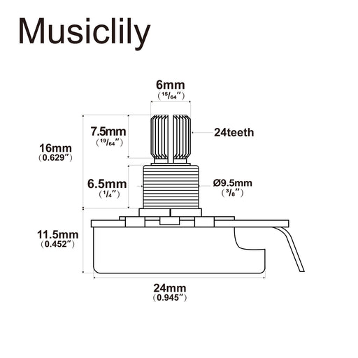 Vollständige Details anzeigenMusiclily Pro HD A250K Vollbronze metrisch grob 18-Zahn gespaltene kurze Welle Kesseltongeber Audio-Taper-Potentiometer für E-Gitarre, Bass