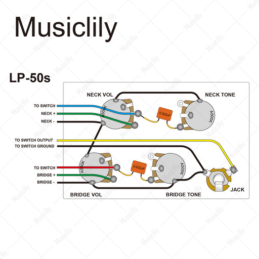 Vollständige Details anzeigenMusiclily Pro LP-CBLA Alnico 5 Covered Humbucker Neck Bridge Pickups MX3321 MX3322 Verdrahtungsdiagramm