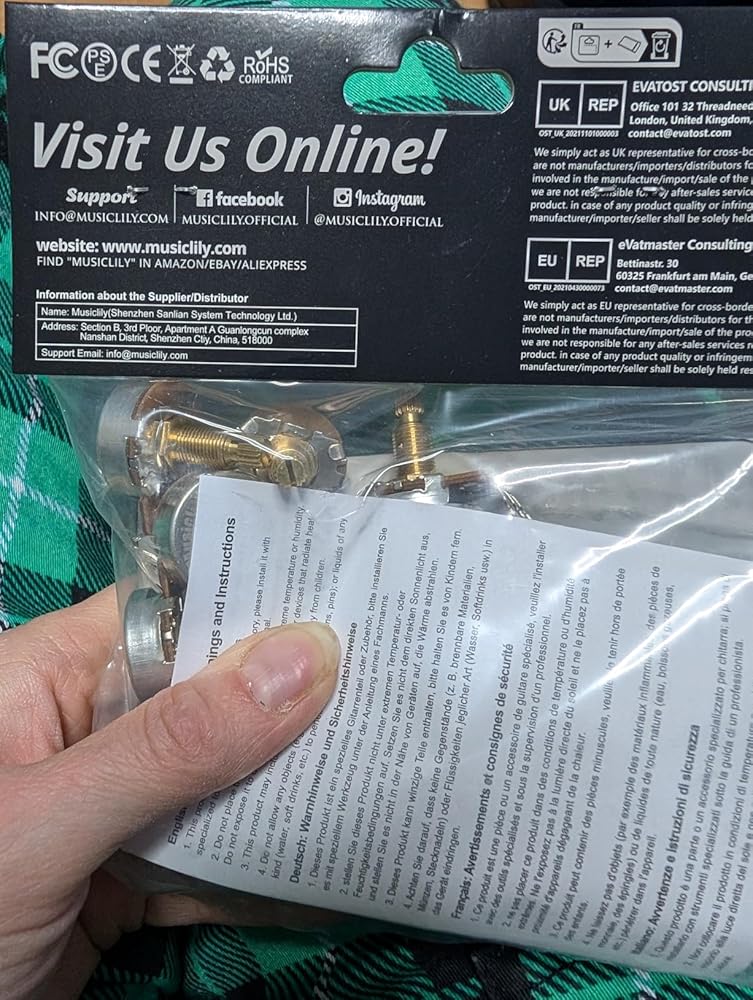 Ich habe bereits Musiclily-Potis in mehrere meiner Gitarren eingebaut, also dachte ich, als diese hier ankamen, dass ich nicht enttäuscht sein würde – und das war ich auch nicht. Sie sind leicht, aber sehr gut verarbeitet und scheinen einfacher zu beschalten zu sein als die meisten anderen. Ich habe vier davon in eine Epiphone SG eingebaut, und sie funktionieren fantastisch und klingen großartig. Während der gesamten Einstellung gibt es keine Rauheit, sondern nur eine gleichmäßige Feinabstimmung. Sie werden mit einer großen Tüte Zubehör geliefert, die Unterlegscheiben, Sicherungsscheiben und Muttern enthält. Ich habe versehentlich mittellange Potis für meine SG bestellt, aber durch die Kombination einer alten Scheibe mit der Sicherungsscheibe passte alles perfekt. Ich tausche Potis nicht allzu oft aus, aber der Kauf dieser im Großpack ist ein ziemlich guter Wert. Es ist sinnvoll, ein paar davon vorrätig zu haben, falls nötig. Ich glaube nicht, dass man für das Geld bessere Potis finden kann.