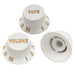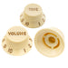 Los botones carecen de lo más importante sobre por qué alguien los tendría. Sí, son negros. Sí, encajan en mi nueva Squier Contemporary strat - pero - la letra/números blancos en el botón de volumen no están aplicados de manera uniforme y en algunos lugares donde deberían estar, no están aplicados en absoluto. Básicamente, parece un botón usado y el color blanco se ha desgastado en varias partes del botón. Los 2 botones de tono están bien. Lo que apesta es que estas piezas son demasiado baratas para que valga la pena devolverlas para obtener un reembolso - y ahora estoy otros $8 más en los botones porque tuve que comprar otro juego en mi tienda de música local. Es simplemente una molestia y una completa decepción. Si estás abierto a sorpresas y estás bien con cosas que llegan en una condición diferente a la descrita, estos valen el costo solo por la emoción de abrirlos para ver si están bien o no, de lo contrario, quizás quieras considerar más la compra de esta parte de una marca/vendedor diferente.
