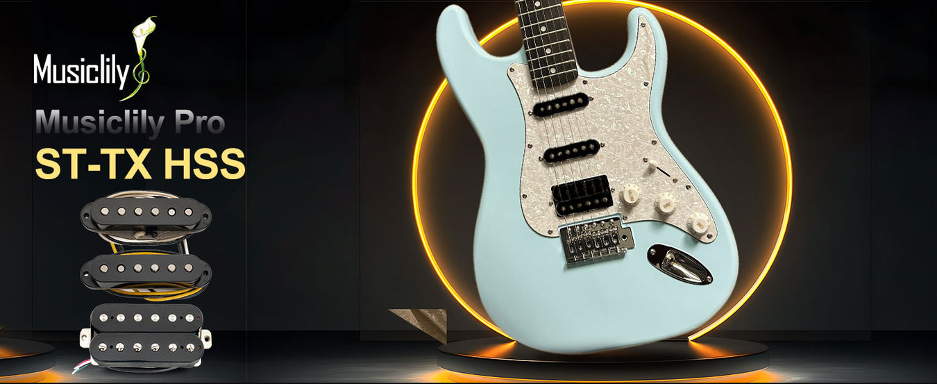 Musiclily Pro ST-TX Alnico 5 Juego de Pastillas de Bobina Simple Escalonadas y Humbucker Descubiertas ST-HSS para Guitarra Eléctrica Estilo Strat