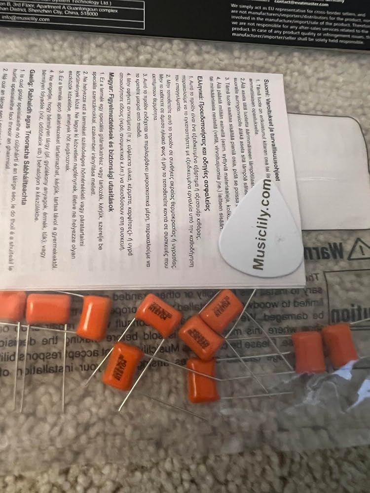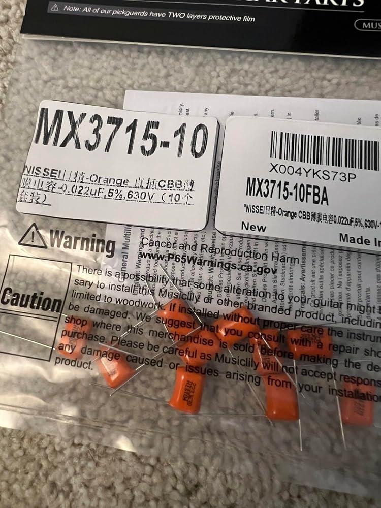 Estos condensadores Musiclily Pro NISSEI son una opción fantástica intermedia para quienes buscan ajustar finamente la electrónica de su guitarra o bajo. Aunque la mayoría de los circuitos usan típicamente .022uF o .047uF, estos condensadores de película de polipropileno metallizado de .033uF ofrecen una "mejor de ambas" reducción que suaviza los agudos agresivos sin convertir la señal en barro. La calidad de construcción es excelente; fabricados en Japón con una tolerancia del 5%, ofrecen mucha más consistencia que los discos cerámicos baratos que se encuentran en muchas instrumentos de importación. Encontré que los cables son robustos y fáciles de soldar, y su tamaño compacto de 250V encaja perfectamente incluso en cavidades de control estrechas o en potenciómetros push-pull. En las pruebas, el rango tonal es suave y musical. En un puente brillante con humbucker, eliminan justo lo suficiente de las frecuencias "picantes" para calentar el sonido, manteniendo las medias bajas claras y articuladas. También son una excelente opción para bajistas que encuentran que un condensador de .047uF es demasiado oscuro para su gusto. Tener un set de diez es un gran valor para aficionados o constructores que quieren mantener un sonido consistente en múltiples proyectos. Si buscas un componente de alta calidad, estable y económico para mejorar un cableado original, estos condensadores NISSEI son una opción confiable y rentable.