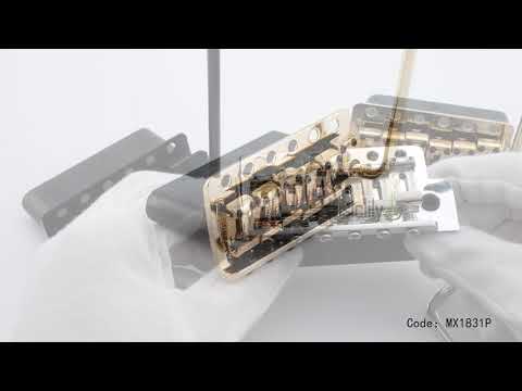 - Vous pouvez choisir le matériau du chevalet de trémolo en fonction de vos exigences sonores : le cuivre offre un son rond et ample dans les médiums et les graves. L'acier inoxydable offre un son aigu net, précis et transparent. L'alliage de zinc offre un son relativement équilibré et économique.