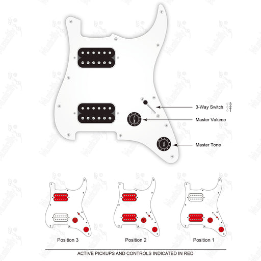 musiclilySchema di cablaggio del battipenna pre-cablato standard ST-HHH con pickup humbucker a rail mini della serie Wilkinson M e selettore americano.
