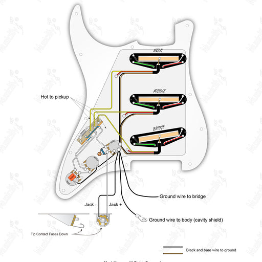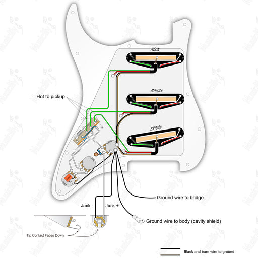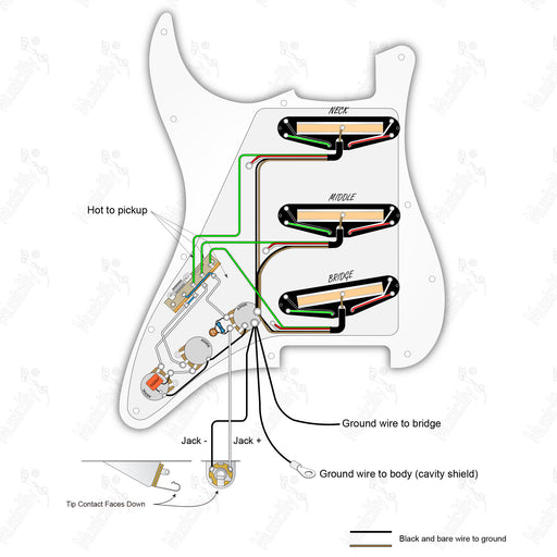 musiclilySchema di cablaggio del battipenna pre-cablato standard ST-HH con 3 potenziometri, pickup Wilkinson M Series e selettore americano.