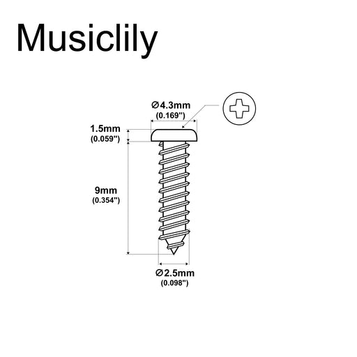 Musiclily UltraFor USA LP style electric guitar truss rod cover mounting Screw thread diameter: 2.5mm(3/32 inch), thread length: 9mm(23/64 inch) Pan head, NOT co...
