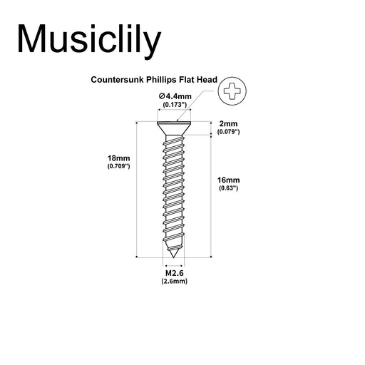 Visualizza tutti i dettagliMusiclily Ultra Metric M2.6x16mm Stainless Steel Neck Humbucker Mounting Ring Screws Phillips Flat Head Countersunk for Electric Guitar (Set of 20)