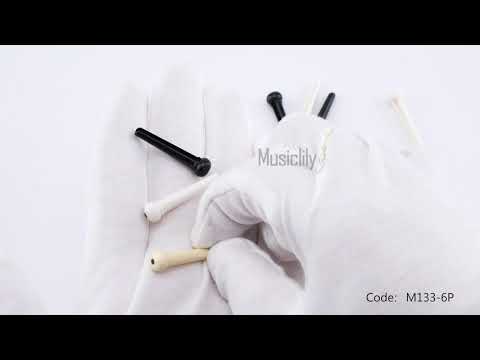 アコースティックやクラシックなギターに適用材質:プラスチックトップヘッド径:8mm,ボトム先端径:3.4mm溝付き,ブラックドットパッケージ内容:6本のブリッジピン