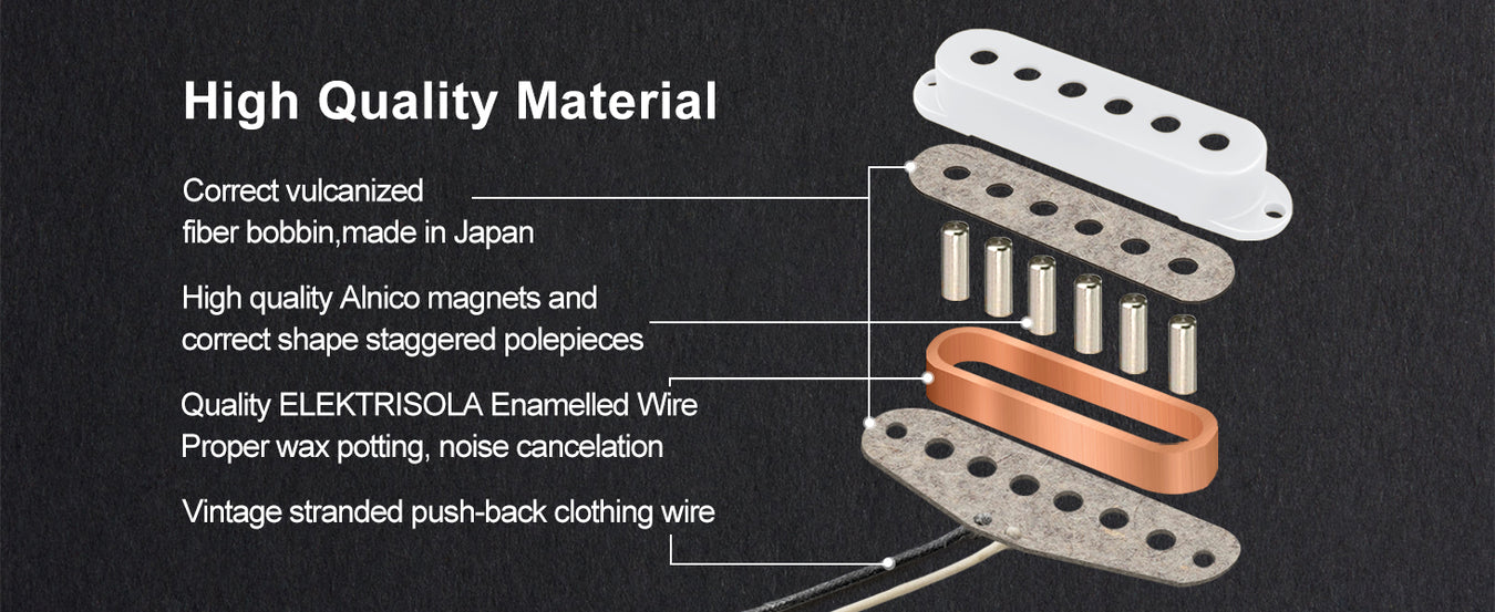 - ストラトタイプのエレキギターに適合、ネック/ミドル/ブリッジポジション用
