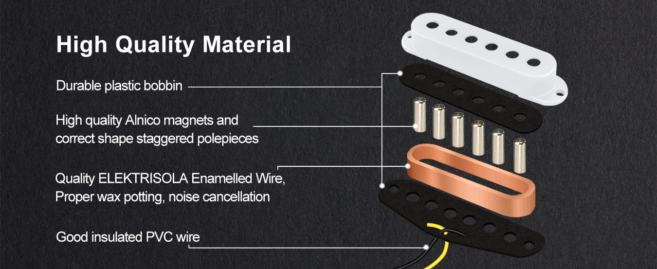 - パッケージ内容:ネック、ミドル、ブリッジピックアップセットおよび取り付け用アクセサリー。注意:当社のネジがご使用に適さない場合がありますので、その場合はお客様のネジをご使用ください。