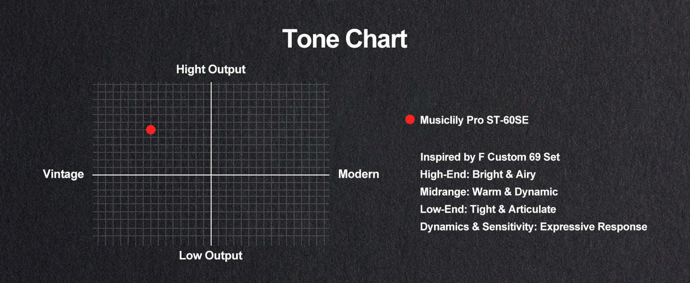 - スタッガード・アルニコ5マグネットポールピースピックアップ、ヴィンテージスタイルのトーン。Fカスタム69ストラトピックアップと類似しており、バランスの取れた出力を実現するスタッガードポールピース、ハムキャンセルを可能にするリバース巻きおよびリバース極性(RWRP)ミドルピックアップ、クリアで透明感のある高音と力強い低音を生成します。ペダルとの相性が特に良く、低音がパンチを効かせ、高音が伸びやかに響きます。ブルース、ロック、クラシックロックにおすすめです。