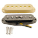 - 抵抗値:6KΩ、インダクタンス:2.5H。許容差:シングルコイルは±0.5KΩ、ハムバッカーは±1KΩ。抵抗値は温度や湿度によって変動します。通常、暑くて乾燥した天候では抵抗値が高く、寒くて湿った天候では低くなります。極端な状況では、許容差がさらに大きくなることがあります。マグネット:アルニコ5;ボビンとベースプレートはファイバー製;配線:2P(ヴィンテージクロスワイヤー)