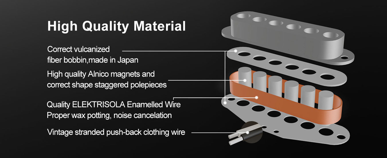 - スタッガード配置のAlnico 2マグネットポールピースピックアップは、FカスタムFAT60Sストラトピックアップに似ており、鮮明なアーティキュレーションを備えた甘く懐かしい1960年代のシングルコイルストラトサウンドを提供します。オーバーワインドデザインにより、低音域のパンチが強化され、モダンな雰囲気が加わります。バランスの取れた出力を実現するスタッガードポールピース。暖かく甘い出力のためのAlnico 2マグネット。