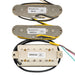- 抵抗値/インダクタンス(ネック/ミドル/ブリッジ):6.1K/6.1K/16.6K、2.6H/2.6H/8.3H。許容範囲:シングルコイルは0.5K、ハムバッカーは1K。抵抗値は温度と湿度により変動します。通常、暑く乾燥した天候では値が高く、寒く湿った天候では低くなります。極端な場合、許容範囲が大きくなります。磁石:アルニコ5;ネック/ミドル:ファイバーボビンとベースプレート;配線:2P(ヴィンテージクロスワイヤー);ブリッジ:ニッケルシルバーベースプレート;PCボビン;一列の調整可能なネジ;配線:4Pシールド