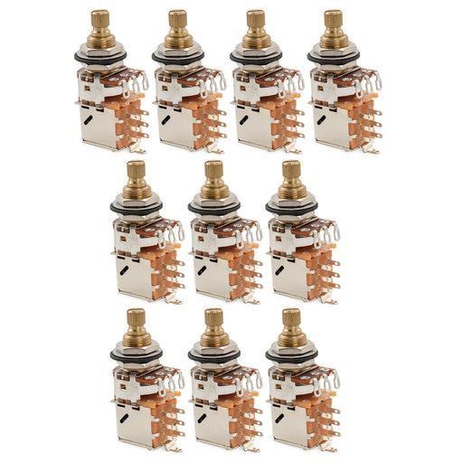 詳細を全部見るMusiclily Pro A500K ブラスポット 分割スタンダードシャフト 3/8インチ プッシュプル オーディオテーパーポテンショメーター エレキギター/ベース用 (10個セット)