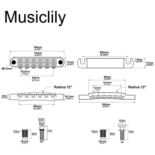 Epiphone LP/SGと他の似ているスタイルなエレキギターに適用弦ピッチ:10.5mm,1弦〜6弦の間隔: 10.5x5=52.5mm (2-1/16インチ),ポスト間隔:82mm(3-15/64インチ).ブッシング外径:12mm (15/32インチ),ポストネジ:M8材質:亜鉛合金製,...