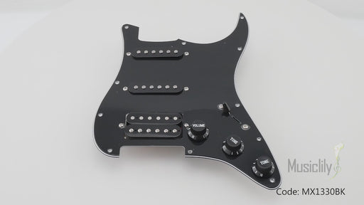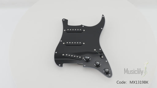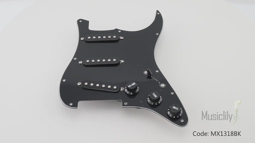 Musiclily Basic 配線済み SSSピックガード セラミックマグネット シングルコイルピックアップと1つのコンデンサー付き STストラトエレキギター用 3プライ ブラック