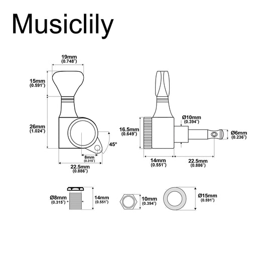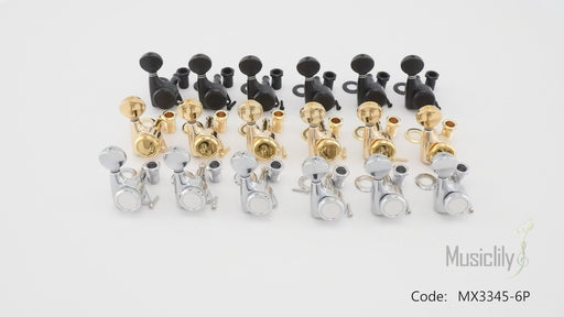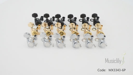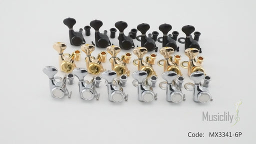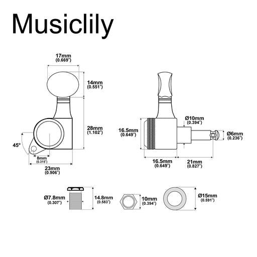 Musiclily Pro R18K 左利き用 6-in-line 18:1比 完全密封式ロック付きマシンヘッド チューナー チューニングペグキー 六角ボタン 45度ネジ Strat Teleスタイルエレキギター用