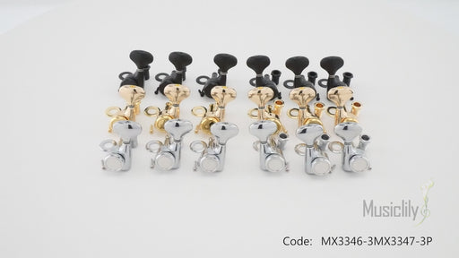 詳細を全部見るMusiclily Pro R18T 3R3L 18:1比率 完全密封ロック式ペグ チューナー ヘッド キー ケンタッキー型ボタン付き 45度ネジ アコースティック/エレキギター用