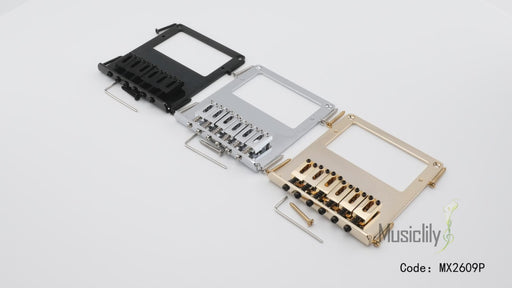 Musiclily Pro薄いボディのスクワイアストラトスタイルなエレキギターに適合,6点止め,購入する前にギターのサイズを測定してください弦ピッチ:10.5mm,1弦~6弦の間隔と取り付けネジ穴間隔:10.5mm*5=52.5mm(2-1/16インチ)モダンスタイルな亜鉛合金サドル,スチールプレート,高さ36mmの亜...