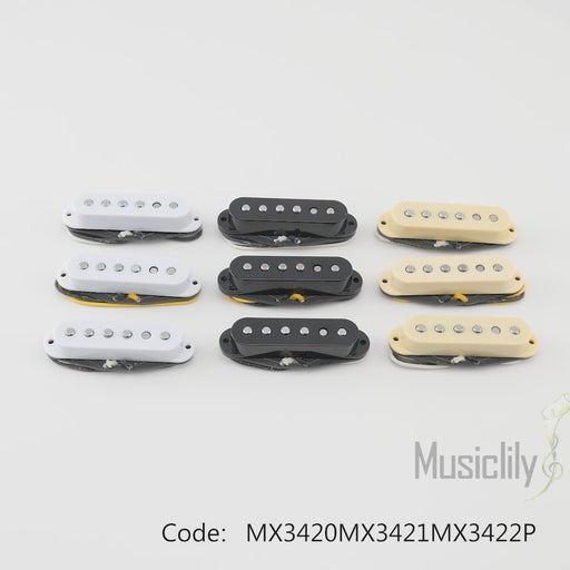 Stratストラトスタイルのエレキギター用,ミドルポジション.ミドルのピックアップは逆巻/逆極性で,ハムキャンセリング機能を実現しますポールピースの間隔:50mm(1-31/32インチ)セラミックマグネット,直流抵抗値: 6K,許容誤差: 0.5K金属合金製,プラスチック製白いピックアップカバ...
