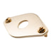 - ジャック穴の直径:9.6mm (3/8インチ),取り付けネジ穴の間隔:40mm (1-37/64インチ),全長:50.5mm(1-63/64インチ),幅:27mm(1-1/16インチ),厚さ:2mm(5/64インチ)