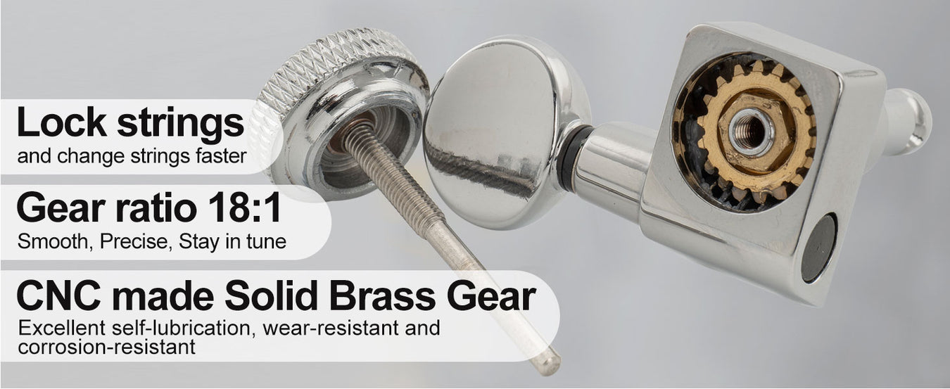 Most of my guitars are equipped with locking nuts, and I've always wondered if adding locking tuners would really help make string changes less tedious. These are a really good, affordable way to see if the upgrade is worthwhile.These were packaged really well, and the overall fit and finish is very good considering the price. All the tuners rotate smoothly with no binding or excessive play. (You can easily remove the locking screw to access the gears for lubrication or to tighten the gear nut if needed.) The tips of the locking screw posts are beveled, which helps reduce the chance you'll shear off the string. Like most tuners, you can also adjust the button tension by tightening or loosening the button screw.These are slightly heavier than the typical non-locking tuners. On lighter guitars, you might notice a subtle shift in balance toward the headstock due to the additional weight. Lighter weight locking tuners exist, but they cost more.A few additional tips:• These are 18:1 ratio tuners (versus the usual 12:1 to 15:1 on most guitars), meaning you have to turn the tuning knob 18 times for the string post to complete one full rotation, but you get more precise control over tuning adjustment.• Pay attention to the button shape you prefer (these are oval, though hex versions are also available).• Check to see how your existing tuners are mounted on the headstock. Some use a small screw to hold the tuner in place, some have two alignment pins that fit into holes, etc. (These use two pins.) Matching the mounting style of your originals will make installation easier.Overall, these are a fantastic budget option for anyone curious about locking tuners who haven't tried them yet. I think they're a worthwhile upgrade over standard tuners if you change your strings more than a couple of times a year, even on guitars with locking nuts.