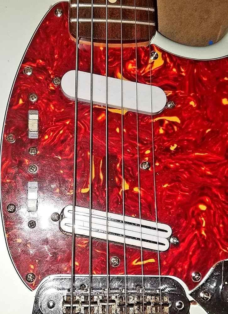 Nat��rlich darf man sich bei dem Preis kein wolkig-flockiges red-tortoise Zelluloid pickguard erwarten - es ist geprintet und sieht in natura anders aus als auf dem Artikelbild. Erstaunlich, da? es kaum ein Anbieter schafft (bzw. schaffen DARF), das red-tortoise Muster so hinzukriegen wie's geh?rt, selbst wenn es nur geprintet ist - die Musterung ist meist viel zu scharf konturiert und die gesch?nten, "entsch?rften" Artikelbilder t?uschen.Doch die Passgenauigkeit im Bezug auf ein US-guard ��berrascht dann doch immer wieder. Hier passen s?mtliche Ausschnitte, angefangen von den Switchcraft 3-way switches ��ber die Pickupausschnitte, die Ausnehmung f��r's Tremolo stimmt und der Halsauschnitt sowieso. Alle Montagebohrungen sind dort wo sie hingeh?ren. Hinweis: Das "American" Mustang pickguard unterscheidet sich vom "Japan" Mustang pickguard vorrangig durch die unterschiedlichen Ausnehmungen/Bohrungen f��r die Schiebeschalter, sowie die Positionen der Montagebohrungen.Die mitgelieferten pickguardschrauben sind wie ��blich bei Chinaprodukten 3 x 11mm und haben etwas gr??ere K?pfe als die z?lligen US-Schrauben mit Gr??e #4 x 1/2" (=2,8mm x 12,7mm). Das Pickguard gef?llt jedoch mit beiden Schrauben-Varianten gut.