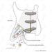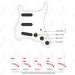 Diagrama de fiação do pickguard pré-montado ST-SSS com misturador de sete sons e captador Wilkinson M mais interruptor importado.